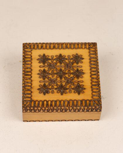 A beautifully handcrafted wooden box with intricate floral carvings.
