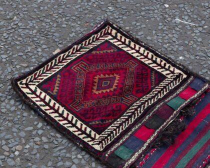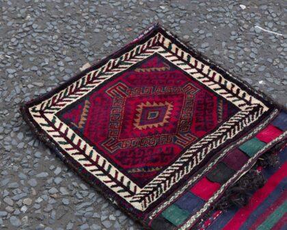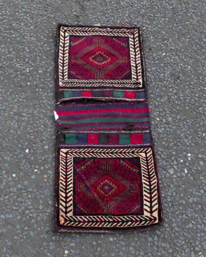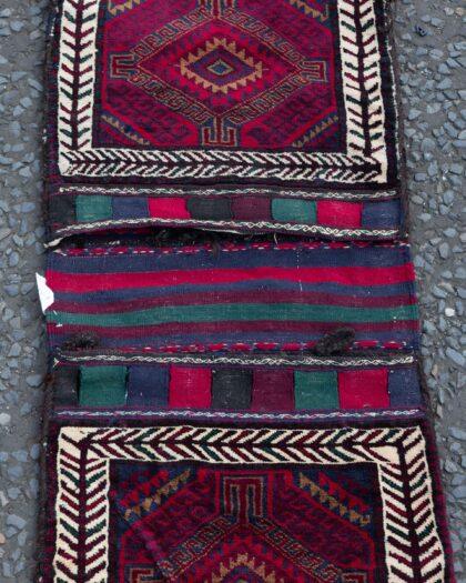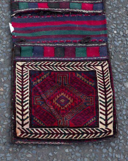This stunning Afghan saddle bag is a traditional masterpiece, handknotted using vegetable dyes and crafted with meticulous attention to detail. Typically used on donkeys by nomadic herders, this piece is far more than a functional item—it’s a true work of art. Originating from the Baluchistan region along the Afghan border, it took approximately four months to complete on a handloom, showcasing the dedication and skill of Afghan artisans.
