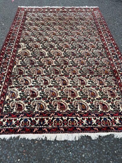 Old full pile hand woven natural dyed Persian Bakhtiari carpet with an all over mahi design.