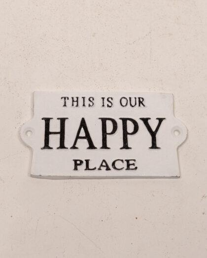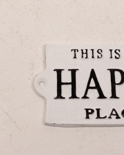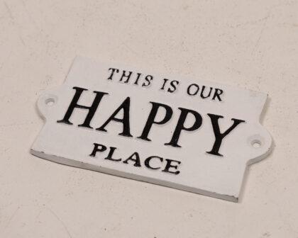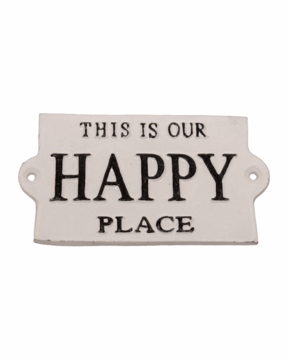 This delighftul cast iron sign comes with the message: "This Is Our Happy Place". With a simple yet attractive design, this plaque features a white background with raised black lettering. The handpainted finish adds to the sign's vintage look and feel. Two mounting holes are incorporated into the design, one on either side. With its lovely simple design and heart-warming message, people love placing this sign in kitchens, porches, living rooms and entrance halls. A very popular item, and understandably so!