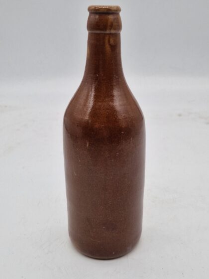 A brown glazed stoneware bottle for Harris & Co Hythe Stone Ginger Beer.