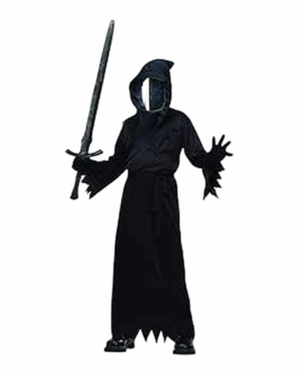 Transform into a menacing spectre with this Haunted Mirror Ghoul Child Costume, featuring a mysterious hooded robe and a reflective mask. Size: M. Note: Costumes cannot be returned.