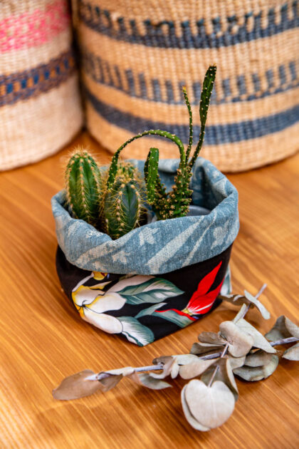 This Hawaiian Handmade Fabric Pot made in collaboration with Kapdaa–The Offcut Company who take fabric offcuts and samples and turn them into wonderful new products! They work with huge brands in fashion and automotive industry… AND US!