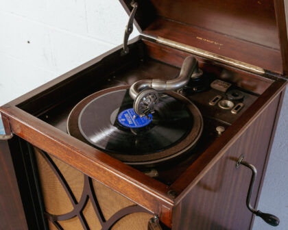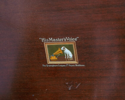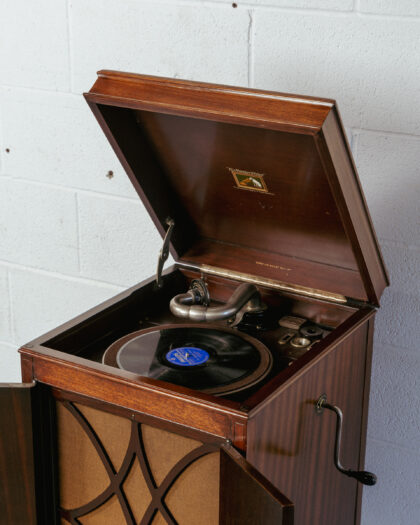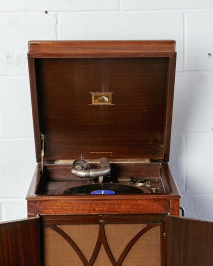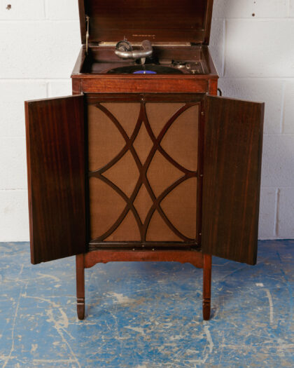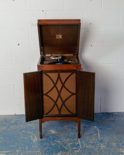 A floor-standing, His Majesty's Voice upright gramophone in mint condition.
