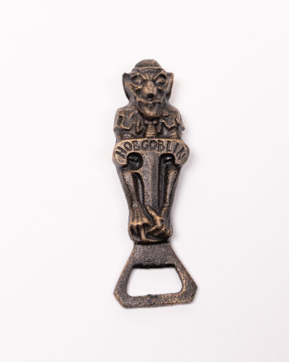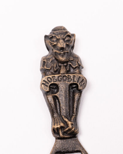 This unique cast iron bottle opener features the mythical, mischievious character known as the hobgoblin. Appearing a wide range of folklore and literary works by writers such as Shakespeare, Milton and Tolkien, hobgoblins tend to be depicted as small, hairy, male creatures that do odd jobs around human dwellings in return for food. This cast iron bottle opener has its hobgoblin crouched over the top in a typical mischievious manner. The opener is quite long, making it easy to prise the top off any bottle. A perfect item to have on hand in any ktichen, home bar, man cave!