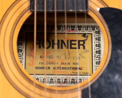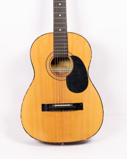 Vintage Hohner HW-150 acoustic guitar. Fair condition with visible wear and repaired crack on the neck. Sold as is for restoration or display.