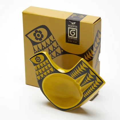 Magpie has reimagined this stylized bird design by redrawing the original illustration archived in the Hornsea Museum and creating new ceramic molds in two sizes. Each dish is glazed in authentic Hornsea colors from the era, capturing its timeless charm.