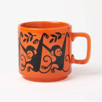 Brand new Hornsea Pottery Magpie mug featuring a delightful monkey design. This cheerful orange ceramic mug is perfect for enjoying your favourite hot beverage at home or in the office. The iconic Magpie design makes it a collectible piece, adding a touch of vintage charm to your kitchenware collection. The mug is stackable. A lovely addition to any home. Brighten your day with this playful and functional mug.
