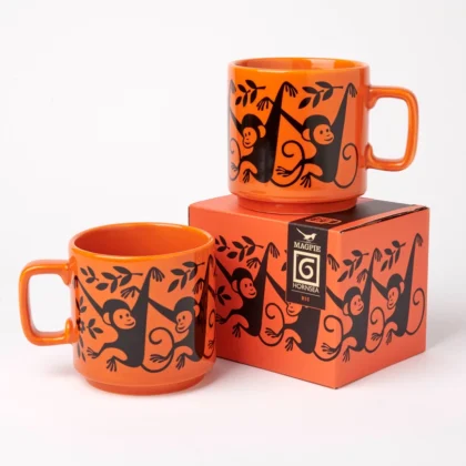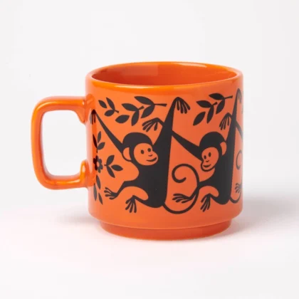 Brand new Hornsea Pottery Magpie mug with monkey design. Cheerful orange ceramic mug, perfect for home or office. Collectible design.