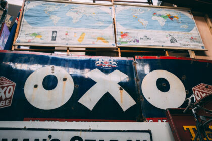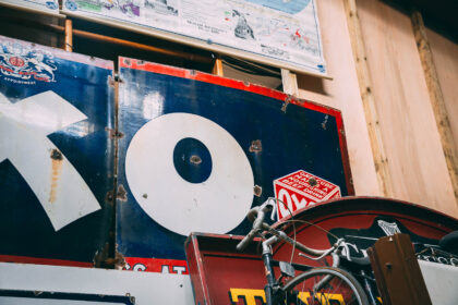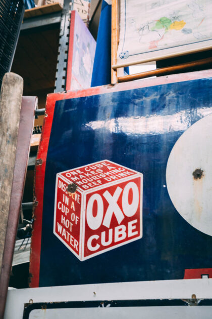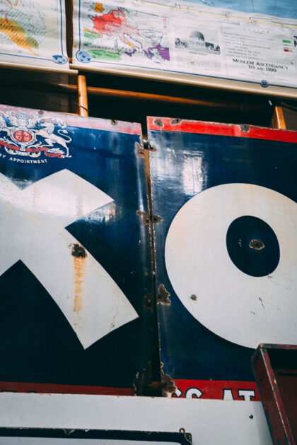 This is a massive enamel advertising sign - it is so large it is split into two parts.