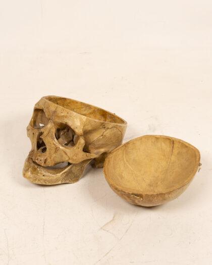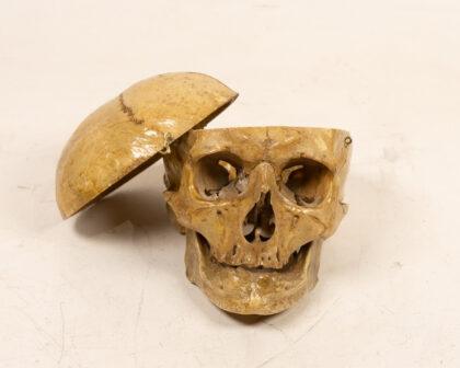 Human skull with hinged calvarium. Ideal for medical study or unique display. Detailed and articulated.