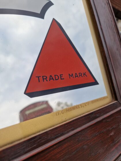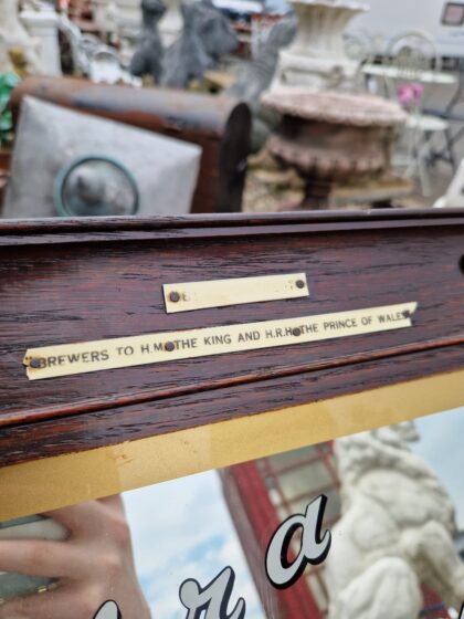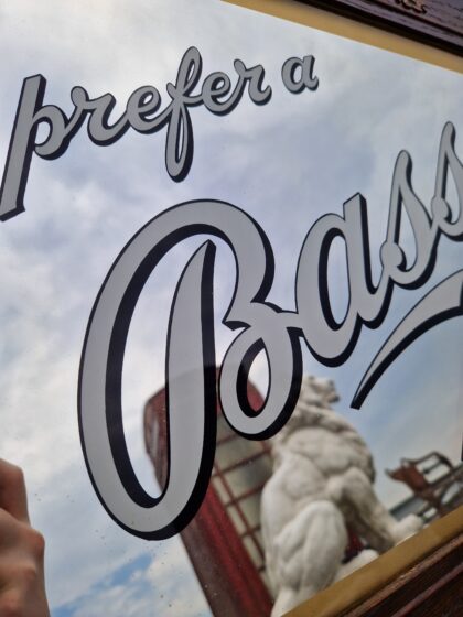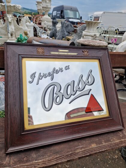 A framed Bass Ale pub mirror with original frame with crests and labels.