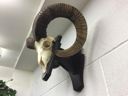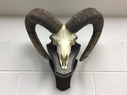 An impressive set of mouflon rams horns, so big they take two shields to mount them. Approx 50cm wide, 40cm high and 30cm depth from the wall.
