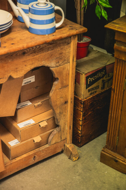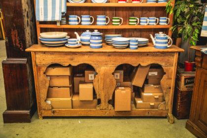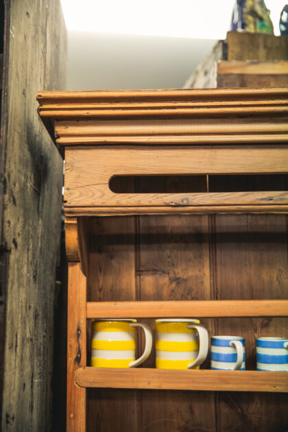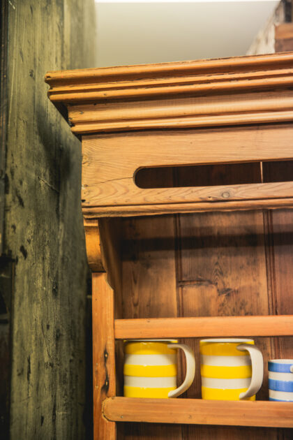 The open lower section is a typical feature of the Irish dresser style, a place for the dog to sleep, or a clockin' hen.