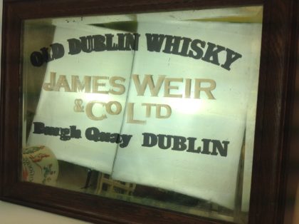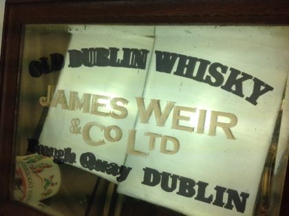 Pre-1928 genuine antique pub mirror advertising a Dublin whisky