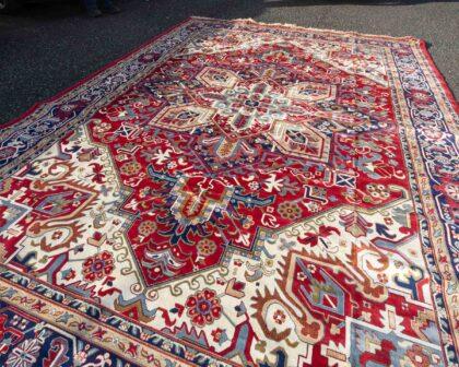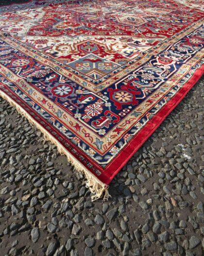 Rich Red Ground, Full Pile Cashmere Carpet With Hariz Medallion Design with Anti Slip