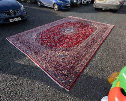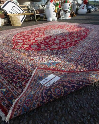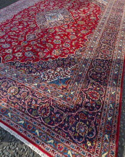 Red Ground Full Pile Kashan Carpet, traditional floral Kashan Medallion design. Approx 50 years old. Signed by master weaver.