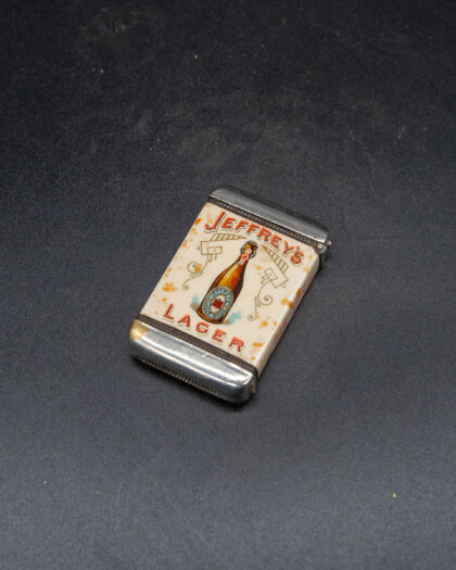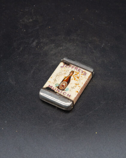 A small match holder for Jeffrey's Lager Beer and Jeffrey's Munich Beer/