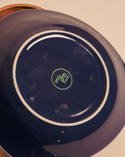 A blue glazed ceramic ashtray for John Begg Scotch Whisky. Made by Wade and bears green backstamp to base.