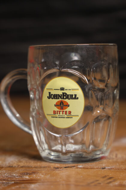 Glass stein for John Bull Bitter beer.