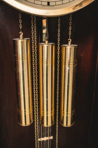 Features Westminster chimes. Missing a 7 on the face. Full working condition and keeping good time. The chime needs calibrated.