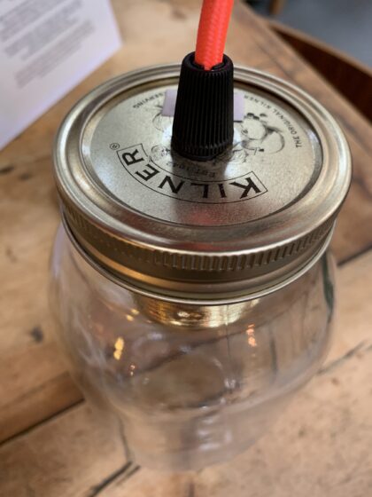 Handmade lamp with vintage style flex in funky fluorescent orange.