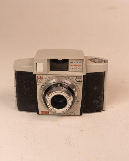 This Kodak Bantam Colorsnap 3 camera is a vintage piece, perfect for photography enthusiasts and collectors. Featuring a classic design, it offers a glimpse into mid-20th-century photography technology. The camera is in used condition with some signs of wear. This item has not been tested, we cannot verify if it is working or not and is sold as a prop only.