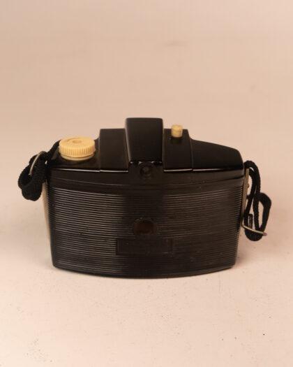 This Kodak Brownie Cresta camera is a classic piece from the mid-20th century, featuring a robust plastic body with a simple, elegant design. It includes a fixed lens and is perfect for collectors or as a vintage decor item. The camera is in good physical condition, showing minimal signs of wear consistent with its age. Please note: This item has not been tested, we cannot verify if it is working or not and is sold as a prop only.