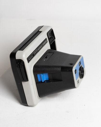 This Kodak EK1 instant camera features a sturdy build and iconic design, perfect for collectors or as a display piece. The camera exhibits some signs of wear consistent with its age. This item has not been tested, we cannot verify if it is working or not and is sold as a prop only. Its dimensions make it a standout piece for any vintage camera collection.