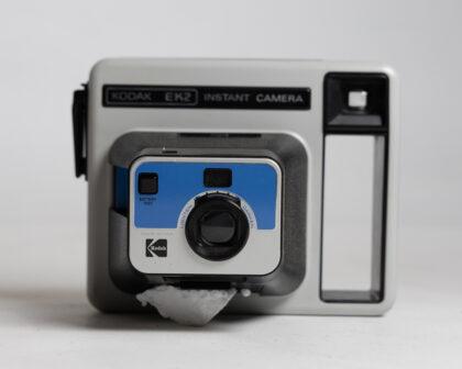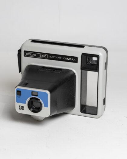 This Kodak EK2 instant camera is a classic piece of photography history, ideal for collectors or as a display item. It features a retro design with a combination of black and silver colors. The camera is in good visual condition with some minor signs of wear consistent with age. This item has not been tested, we cannot verify if it is working or not and is sold as a prop only.