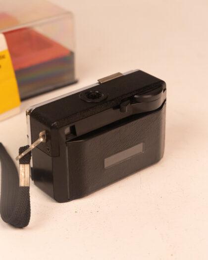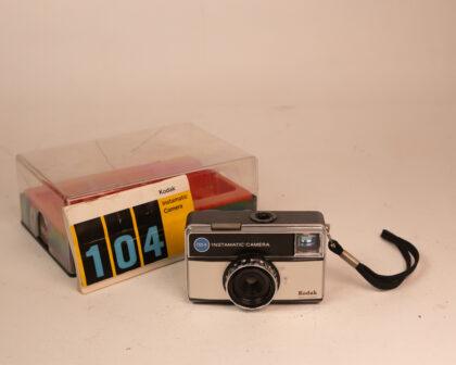 This Kodak Instamatic camera is a classic piece of photography history, perfect for collectors and enthusiasts alike. Housed in its original case, this camera showcases a sleek design typical of its era. Please note that this item has not been tested, we cannot verify if it is working or not and is sold as a prop only. It is in good cosmetic condition with minor signs of wear, reflecting its vintage nature.