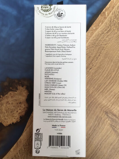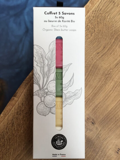 Box of 5 60g organic shea butter soaps.