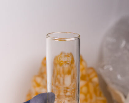Clear laboratory chemist's glass flask. Perfect for scientific use or quirky home decor, this vintage-style flask adds a touch of retro to any space.