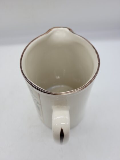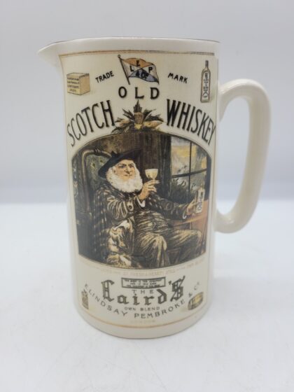 White glazed ceramic jug. Bears applied picture and text, "Laird's Scotch Whiskey".