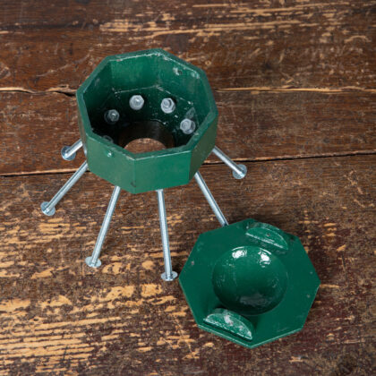 An artists rendition of a landmine. Painted cast iron, nuts and bolts.