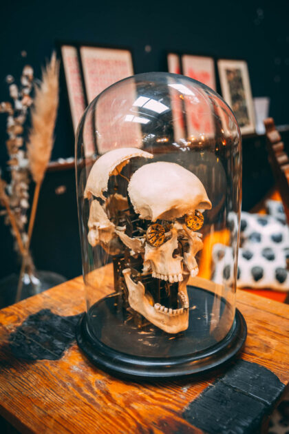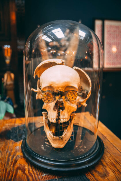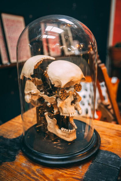 A large glass dome for displaying oddities.