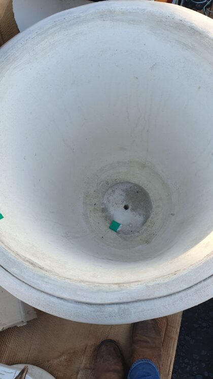 70cm circumference . These planters are ideal for the low maintenance garden or courtyard.