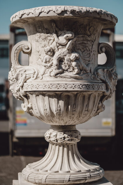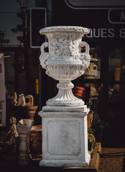 Made of reconstituted stone in the Classical Style.