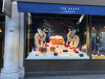 A large advertising display used in Ted Baker store windows worldwide for the 2016 Christmas season. Designed by Ben Jennings. This lights up and the star in the eye rotates.