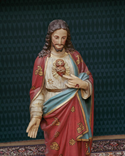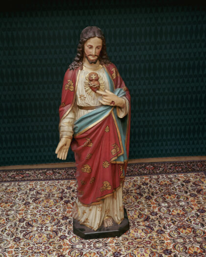 A large Victorian statue of the sacred heart of Jesus Christ. This has been restored, repaired and repainted by a local expert and brought back to it's original glory.