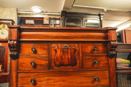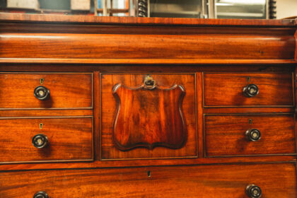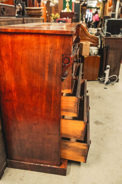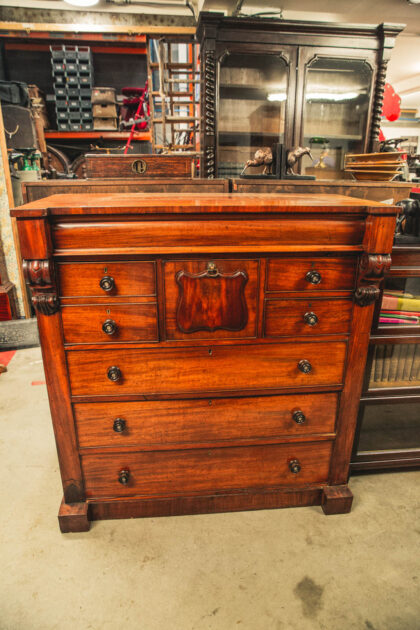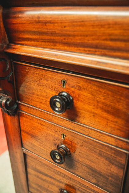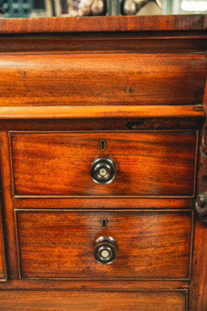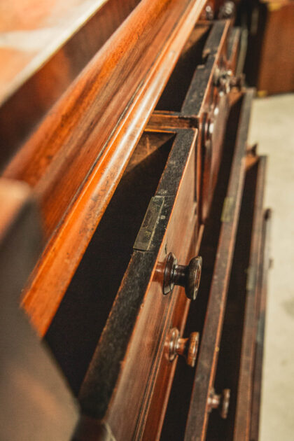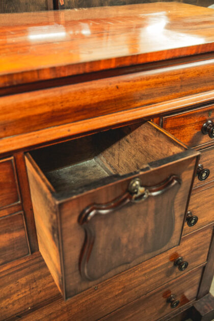 Features 3 graduated drawers with 4 smaller drawers atop. The handles are inlaid with mother of pearl detail.