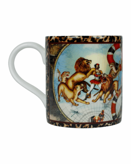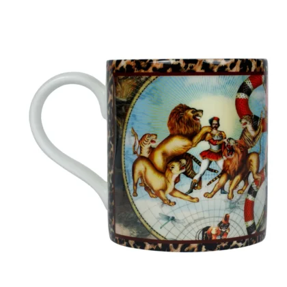 The Myrtle & Mary Fine bone china range of mugs are the perfect gift for yourself and for others. Our cups are beautifully printed with a Glossy finish. Hand-wash with love to keep your cup perfect!Jacques was a lion tamer who roamed the world with his lions looking for love. Nainsi was an acrobat who swung so high she could reach out and touch the stars. Together they formed 'Le Cirque Du Monde' and travelled the world together, delighting people far and wide with their extraordinary circus.