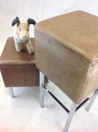 Chrome and leather stool of strong welded construction, and soft leather seat.