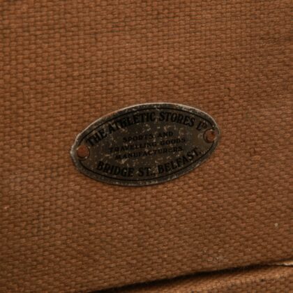 Has a small metal label attached which reads, "The Athletic Stores Ltd. Bridge St. Belfast".