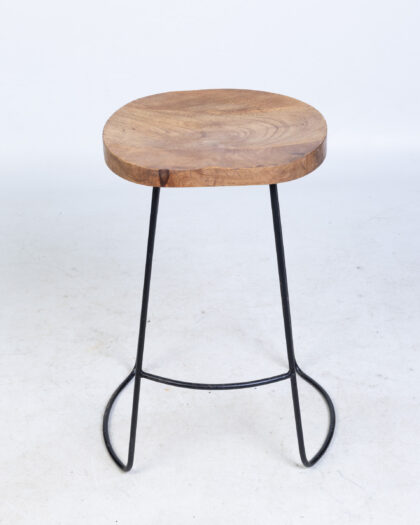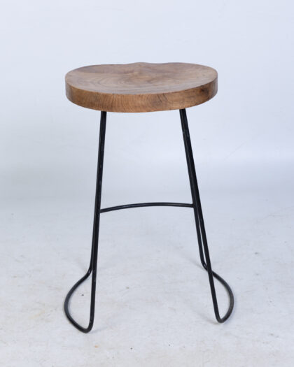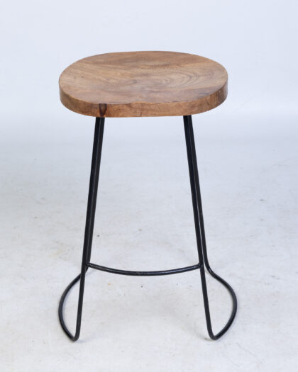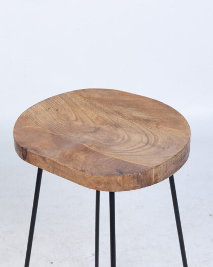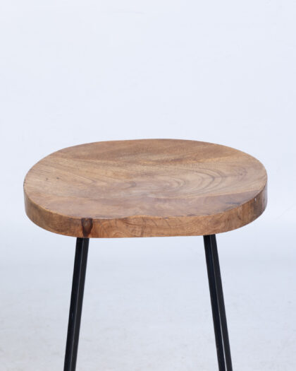 Stylish live edge wood stool with black metal hairpin legs, offering a unique touch of industrial modern design and sturdy seating for any room.