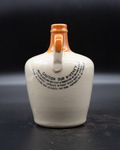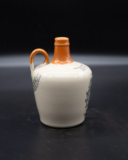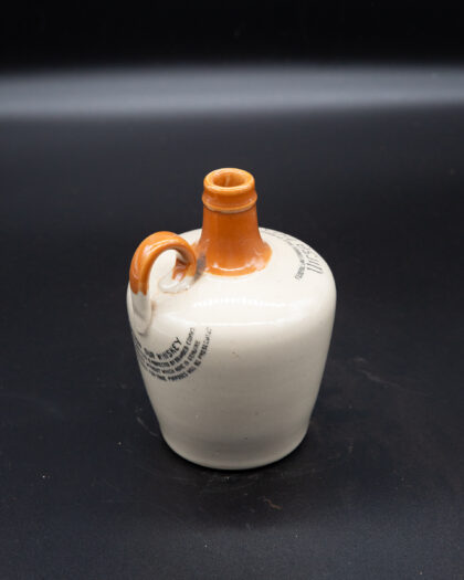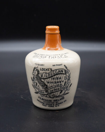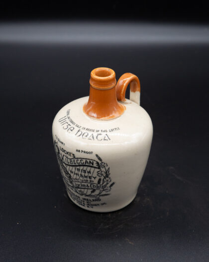 A brown, two-tone stoneware flagon for Locke's Kilbeggan Irish Whiskey.