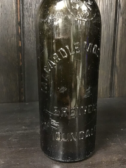 A green glass bottle from MacArdle Moore & Co. Ltd. Brewers of Dundalk.