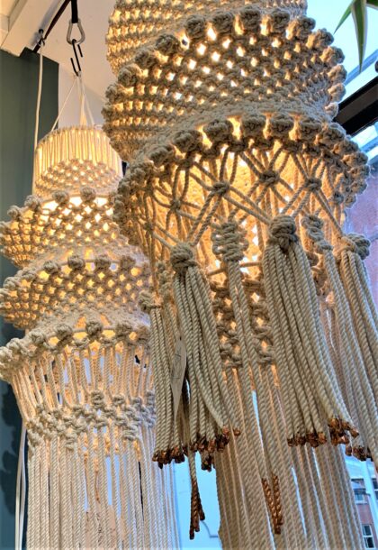 View our other two Macramé Pendant Light shades - Copper Tipped or Blue and Silver Tipped