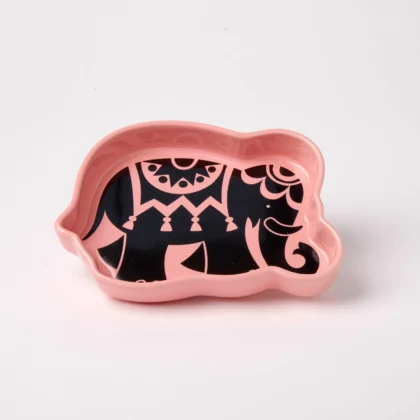 A pink stoneware trinket tray featuring an elephant design by Jack Dadd, part of a collaboration between Magpie and Hornsea. Gift-boxed.