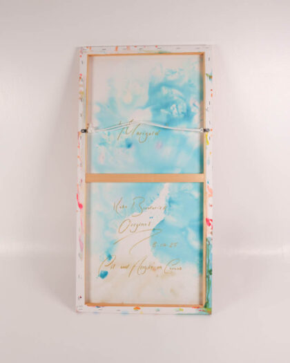 Signed Kate Broderick original painting on canvas. Abstract style depicting a sail boat. Brand new, vibrant colours, 40cm x 80cm approx.
